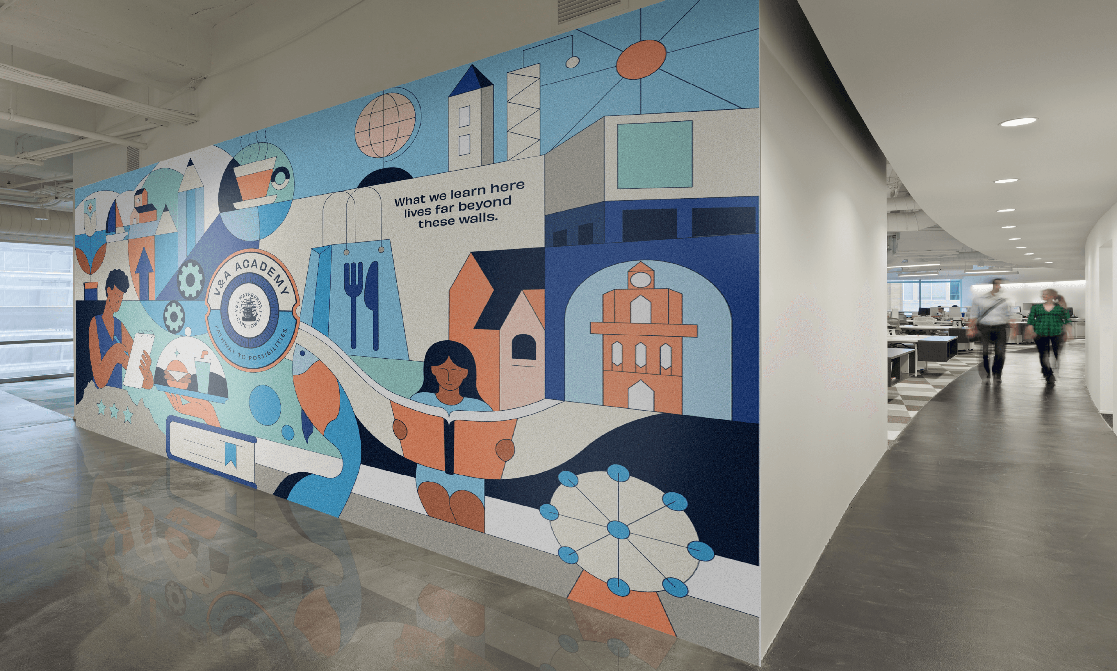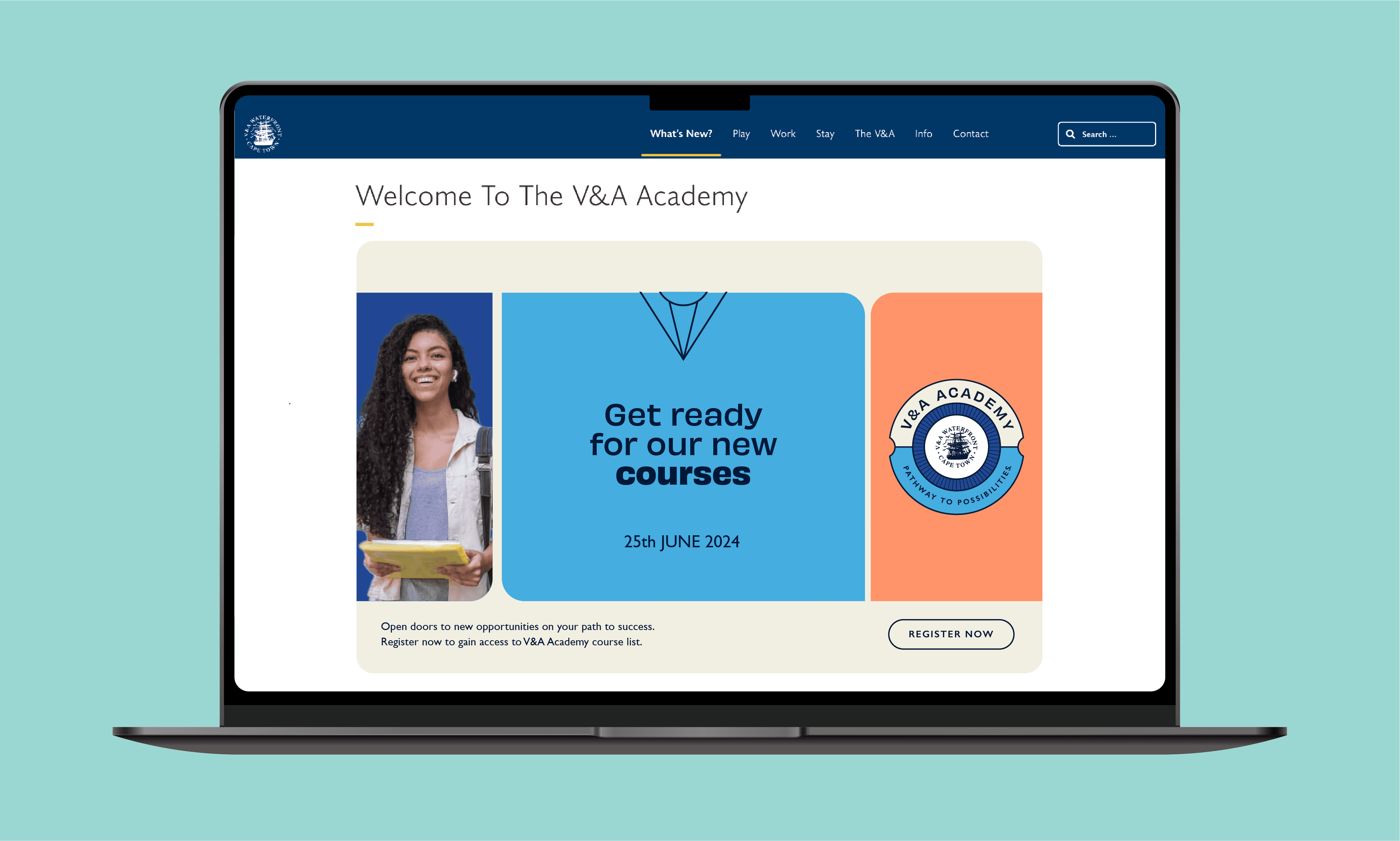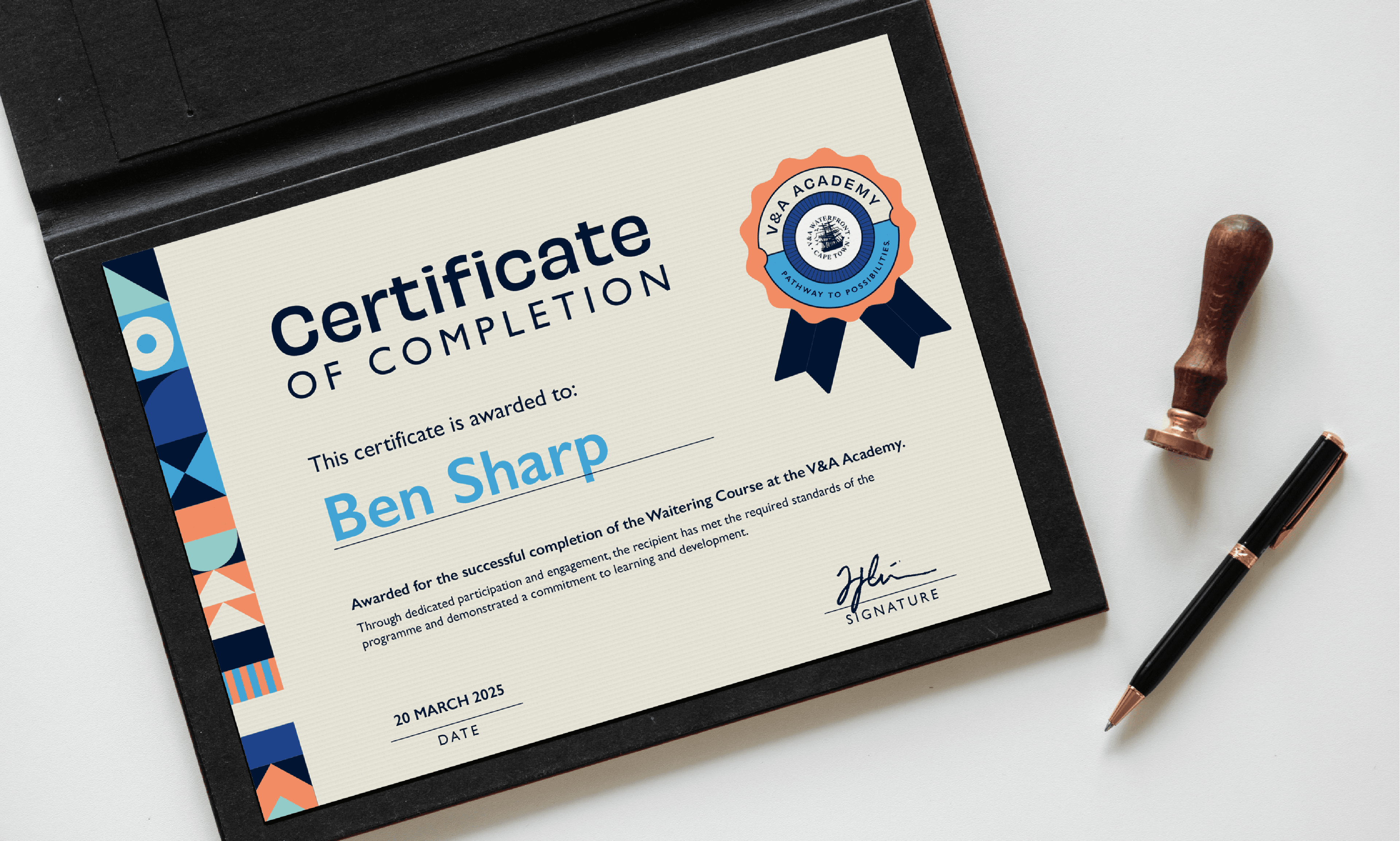 The V&A Academy is an initiative by the V&A Waterfront focused on preparing young people for careers in hospitality, tourism, and retail while addressing youth unemployment. The programme creates a pipeline of work-ready talent for businesses within the precinct and beyond. Developed while working through The Nimble Studio, the identity was designed as a sub-brand within the existing V&A Waterfront branding system. A curated selection of the Waterfront’s colour palette was used to create a distinctive yet connected visual presence. The circular emblem draws on maritime references from the Waterfront while symbolising pathways, growth, and opportunity. Combined with clean, contemporary typography, the identity communicates optimism, professionalism, and the Academy’s role in guiding young people toward meaningful employment.